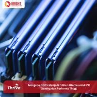 DDR5 telah membawa revolusi dalam dunia memori komputer dengan kecepatan transfer data yang lebih tinggi, peningkatan kapasitas, efisiensi energi yang lebih baik, dan fitur-fitur canggih. Bagi gamers dan pengguna performa tinggi, DDR5 menawarkan segala yang dibutuhkan untuk pengalaman terbaik. Thrive, dengan produk ET ColorSync yang memiliki kecepatan transfer data 3200 - 3600 MHz dan hemat daya listrik, merupakan pilihan yang sangat baik bagi mereka yang mencari kinerja tinggi dan efisiensi energi. Dengan DDR5, masa depan PC gaming dan performa tinggi terlihat lebih cerah dan menjanjikan.