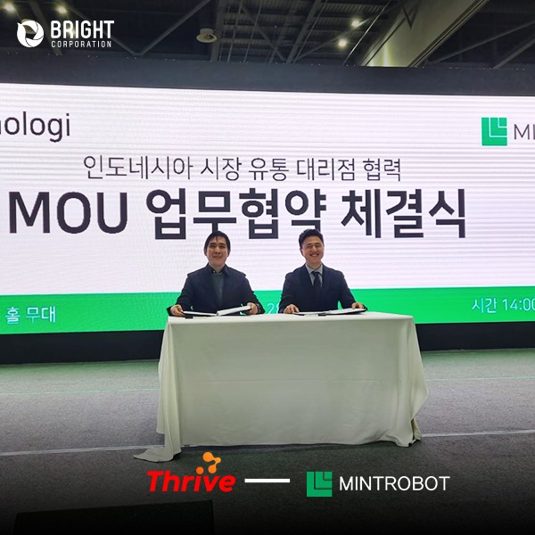 Kemitraan ini diresmikan melalui penandatanganan kerja sama yang di wakili oleh Eddy Yansen selaku CEO Thrive dengan Mr. Justin Kang selaku CEO MintRobot (Korea Selatan) pada Jumat (28/10) di Korea Selatan,