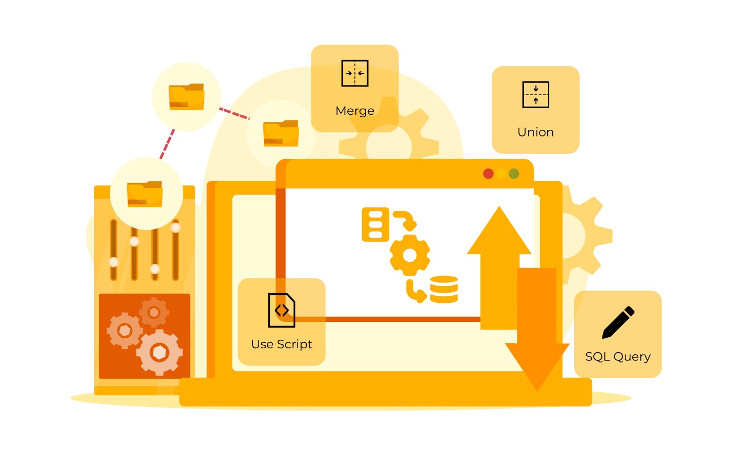 Dengan Keloola Exchange, Anda dapat mengubah data Anda menggunakan empat metode yang berbeda: Merge, Union, Use Script, dan SQL Query. Dengan beragam pilihan ini, Anda dapat menyesuaikan transformasi data Anda sesuai kebutuhan Anda.