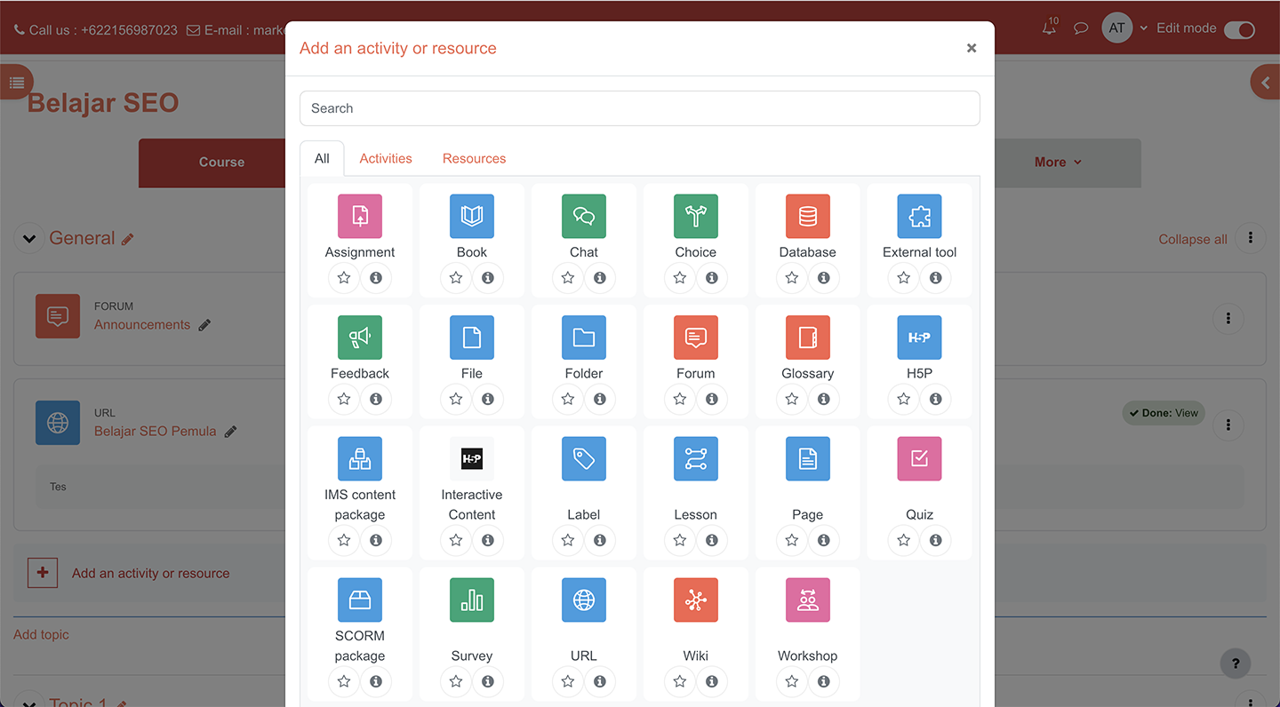 Berbagai fitur Moodle siap dipakai untuk mempermudah proses belajar-mengajar yang mengutamakan metode e-learning.