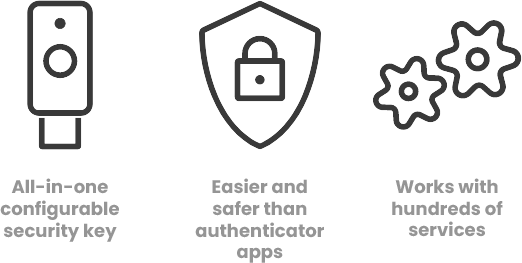 Hanya dengan Yubikey Security Series, Anda bisa mencegah phising dengan cara mengaktifkan autentikasi dua faktor, multifaktor, dan tanpa kata sandi yang kuat, memungkinkan Anda mengakses situs web, aplikasi, dan layanan populer lain dengan aman.